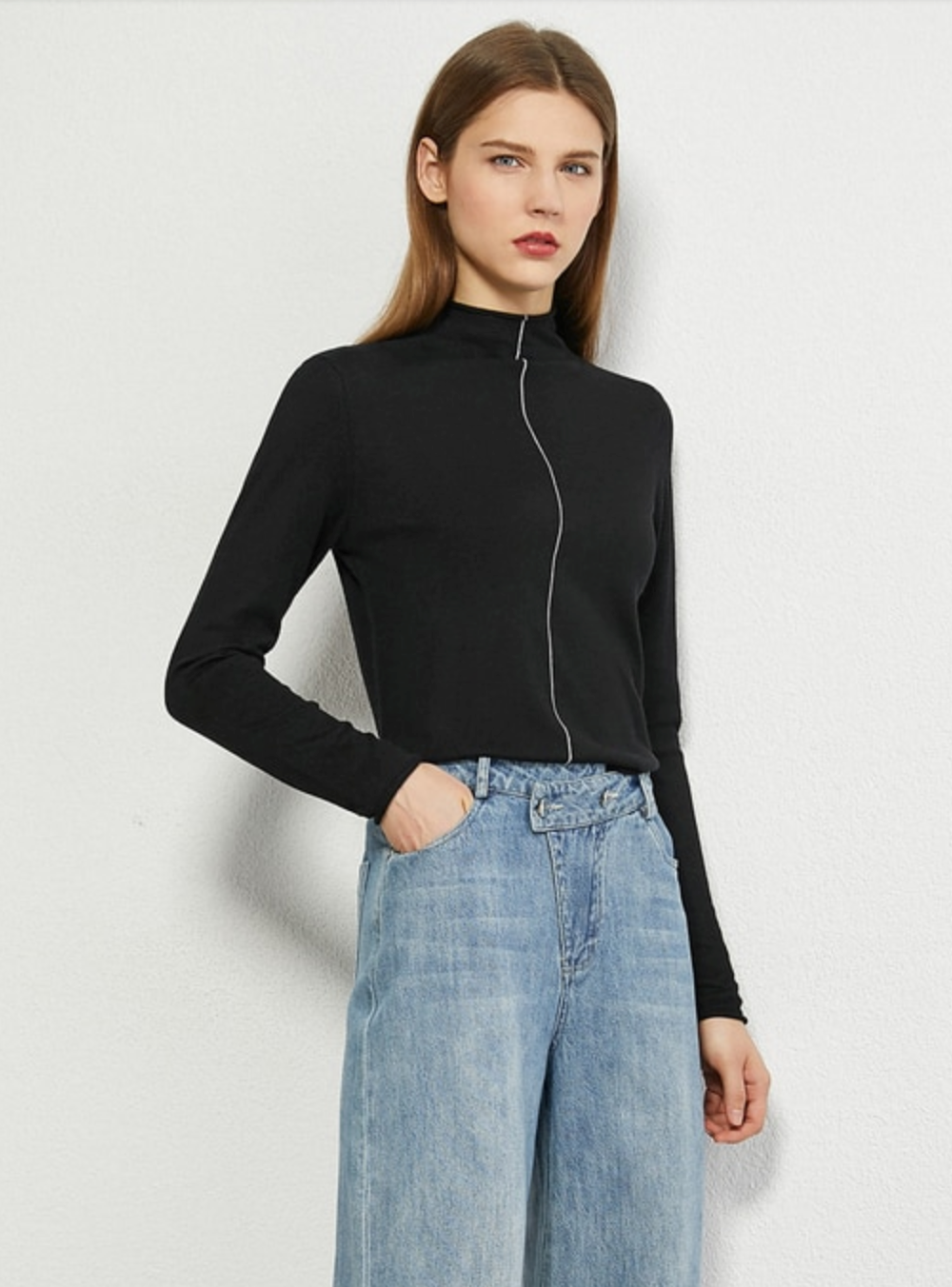 Long sleeve Black Sweater with single black colour strip in the middle, slick designs suits to formal and casual wear. Soft light weight and warm.