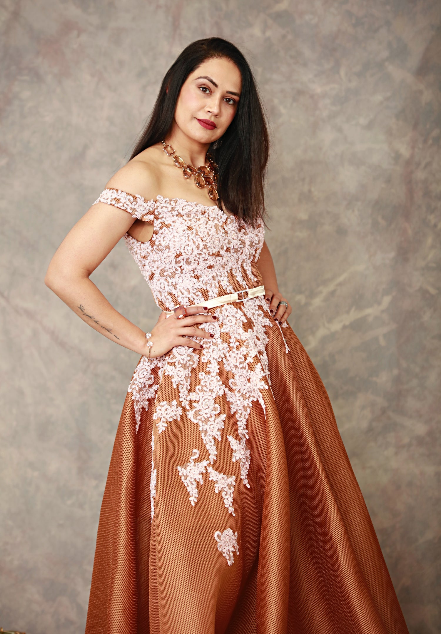 Embroidered High Waist off shoulder Dress