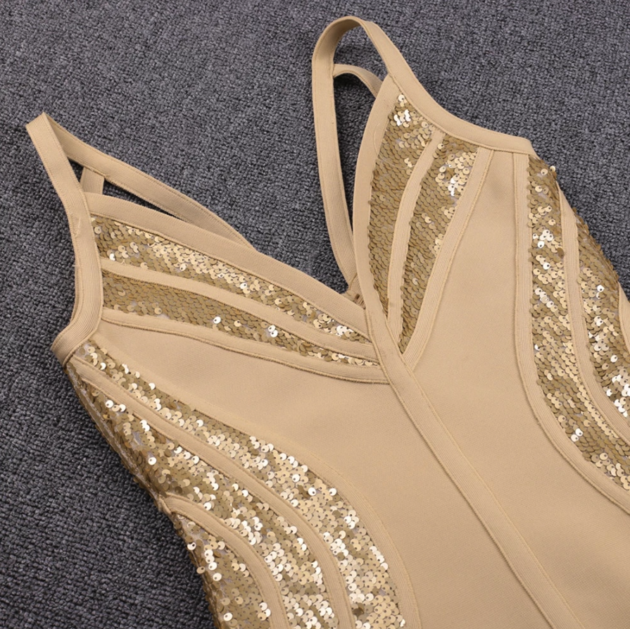 Half Sequin Body con Golden Dress
