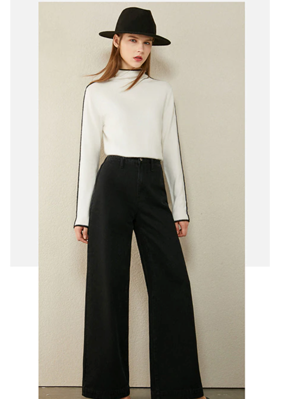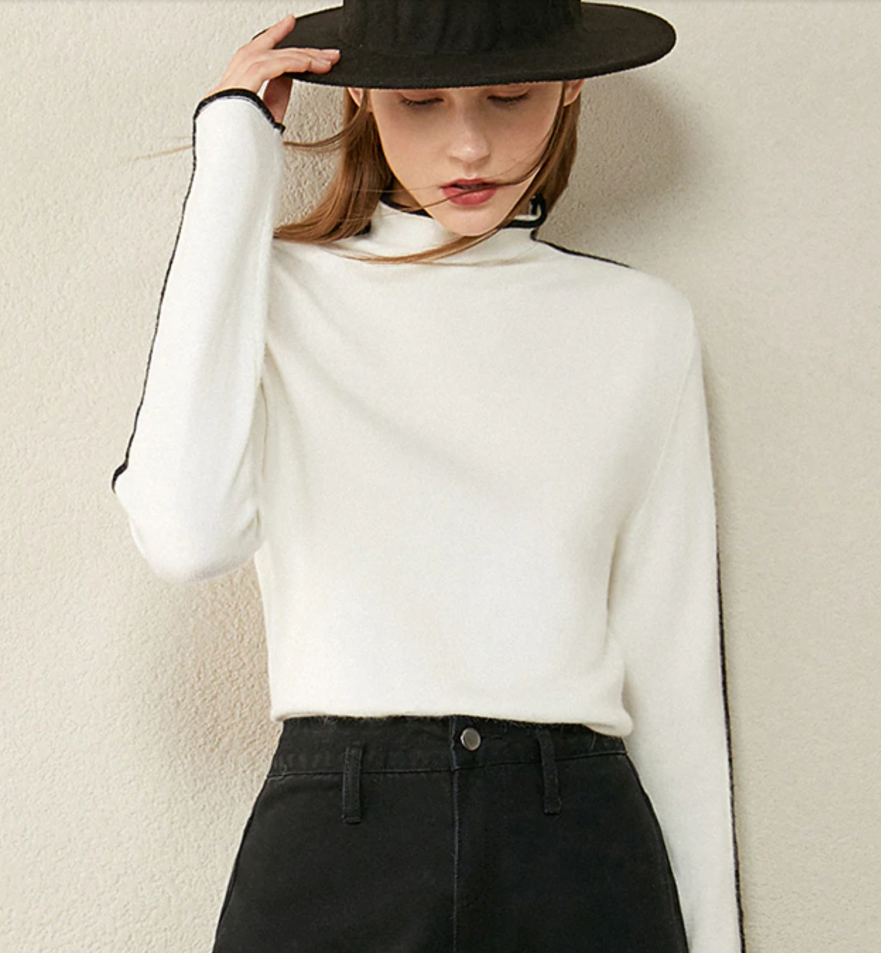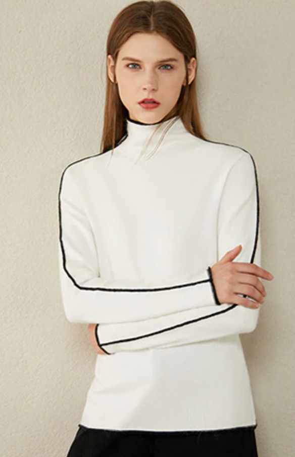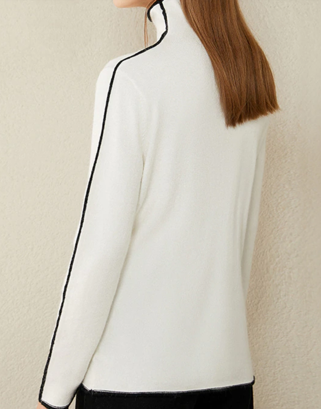 Long sleeve Black Sweater with single white colour strip in the middle, slick designs suits to formal and casual wear. Soft light weight and warm.