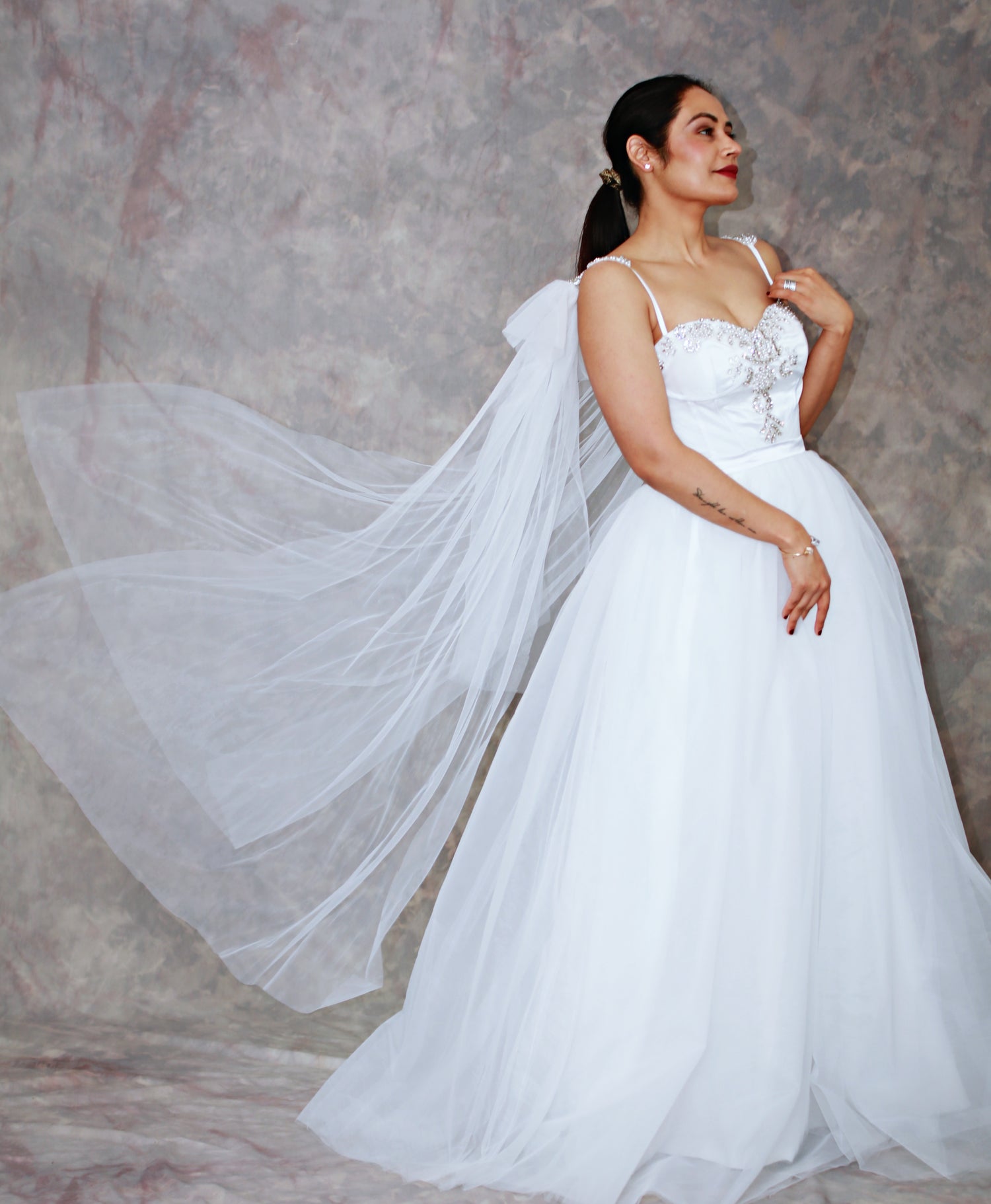 Long White Bridal Gown with detachable Embroidery Fairy strips